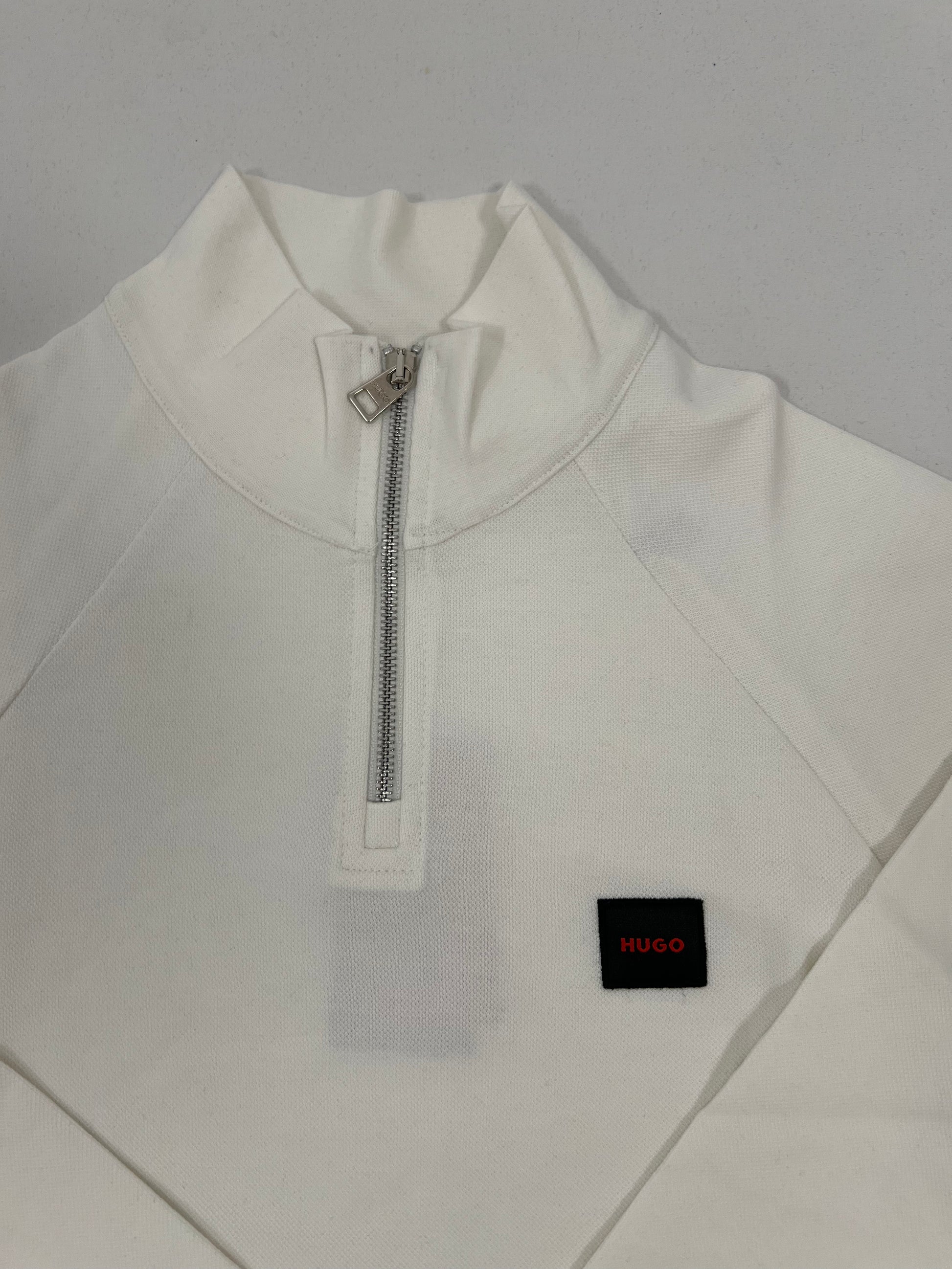 HUGO Beli Quarter-Zip Duks sa Crnim Box Logom