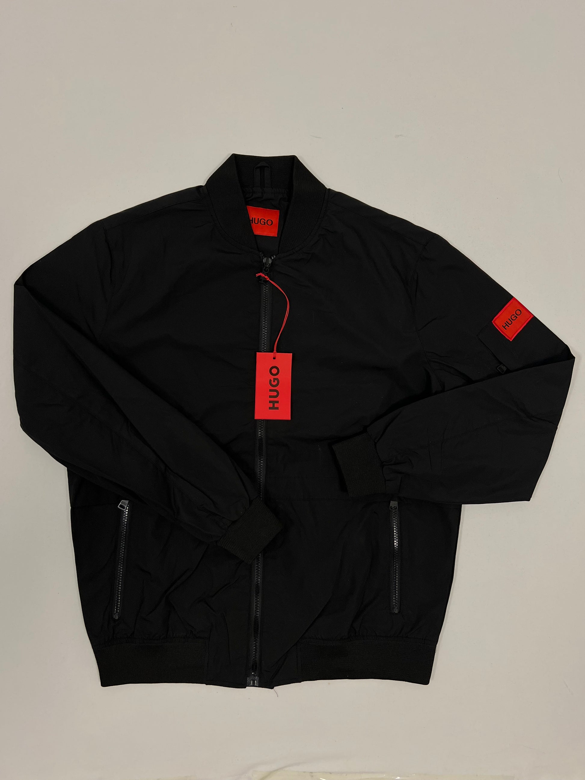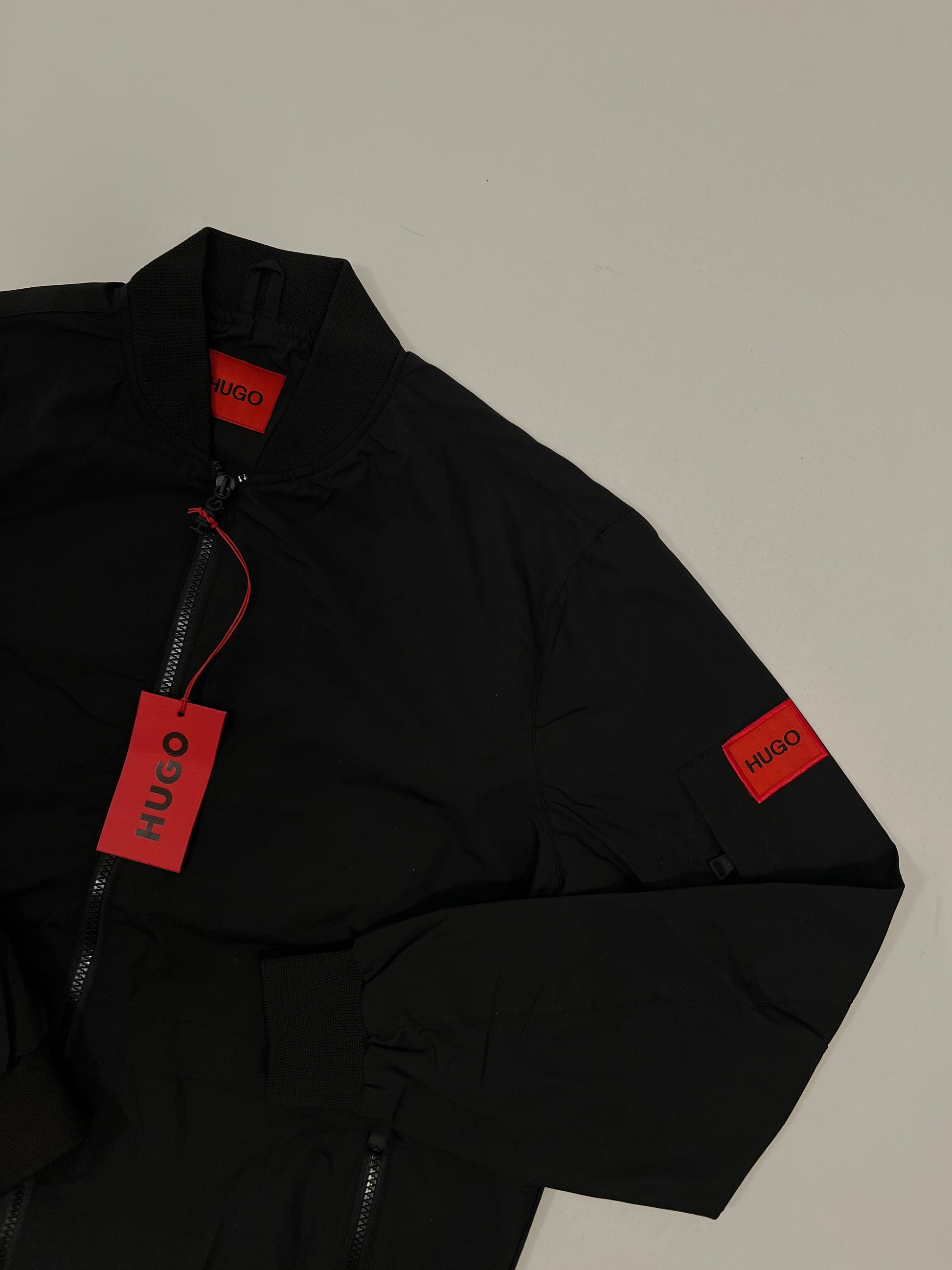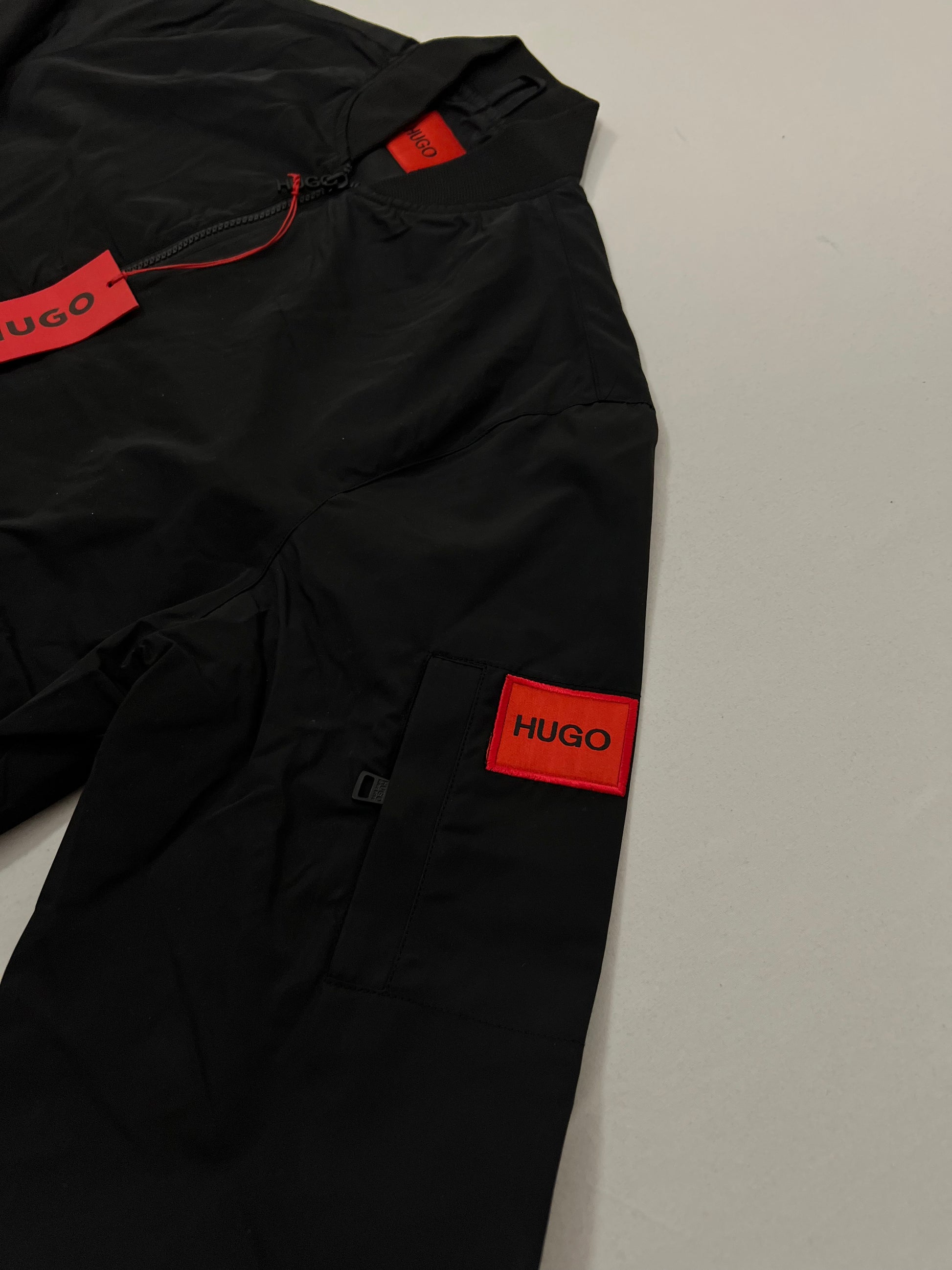 HUGO Crna Bomber Jakna sa Box Logom na Rukavu