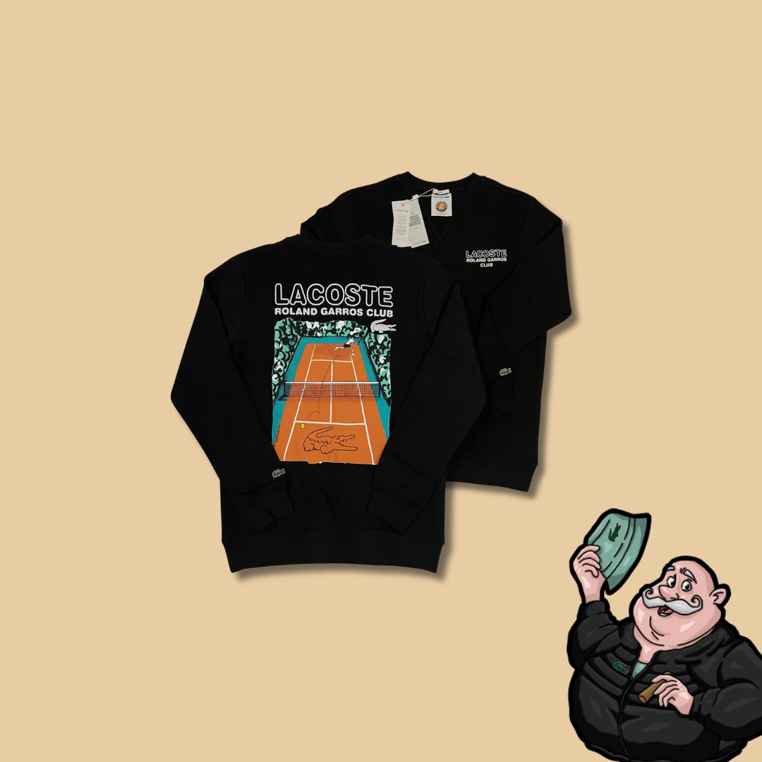 Lacoste x Roland Garros Crni Duks sa Tennis Printom na Leđima